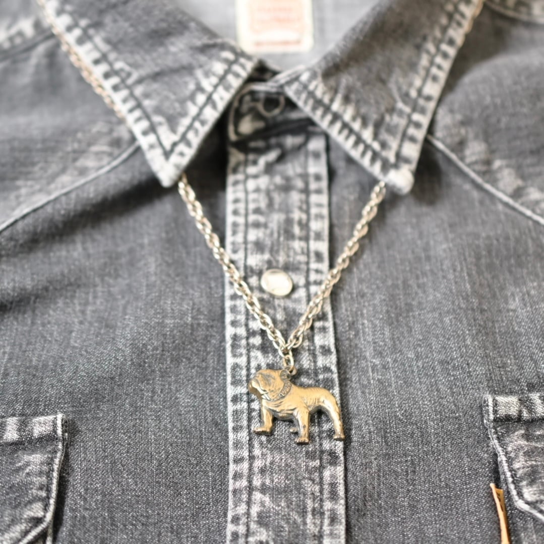 大きめなブルドッグとビンテージチェーンがいいアクセントになっています。