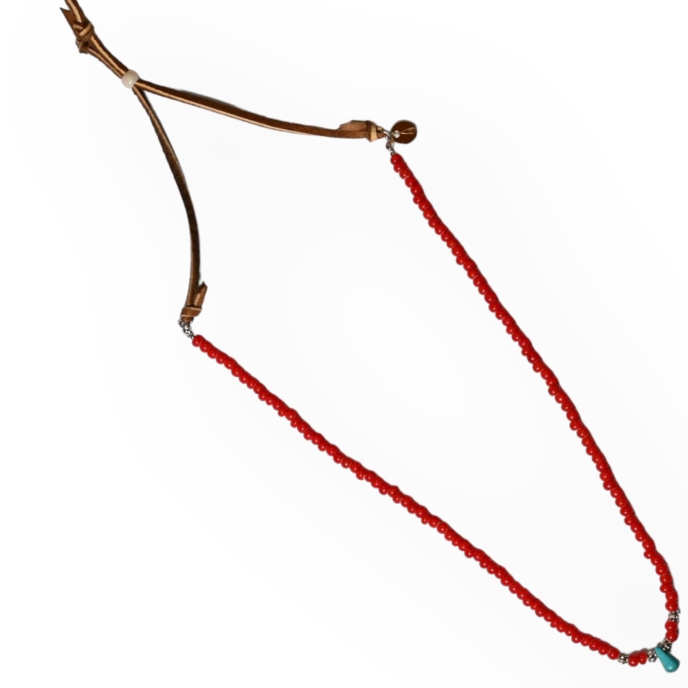 ディアスキンレザーにビーズを通し、60〜70cm長さ調整可能です。